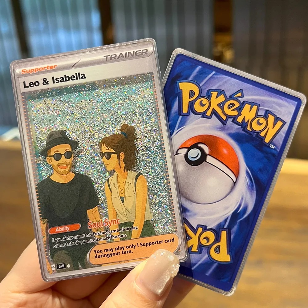 Celebrate your bond with the Personalized 3D Anime Trainer Supporter Pokecard for Couples. This unique collectible transforms you and your partner into adorable anime-style Pokémon trainers, creating a one-of-a-kind keepsake that combines fandom with love.